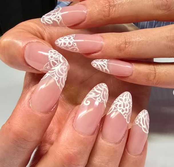 Nails: Celebrity nail artist Pattie Yankee recreated the lace pattern of her dress in intricate nail art.